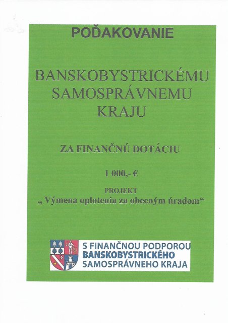 Poďakovanie BBSK za dotáciu na Projekt „Výmena oplotenia za obecným úradom“ Posted on 22. novembra 2023 by gemersketeplice