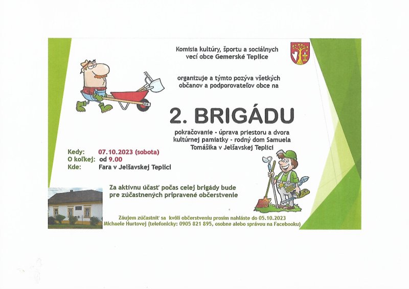 Pozvánka na 2. brigádu dňa 7.10.2023 – Rodný dom Samuela Tomášika v Jelšavskej Teplici