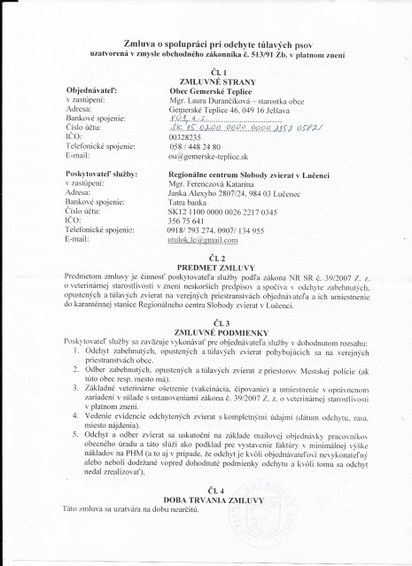 Zmluva o spolupráci pri odchyte túlavých psov Posted on 29. júla 2019 by gemersketeplice Príloha Príloha