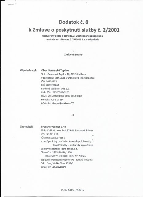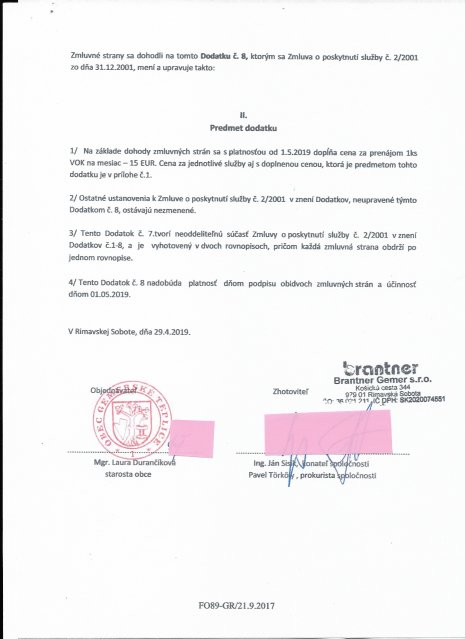Dodatok č. 8 k Zmluve o poskytnutí služby č. 2/2001
