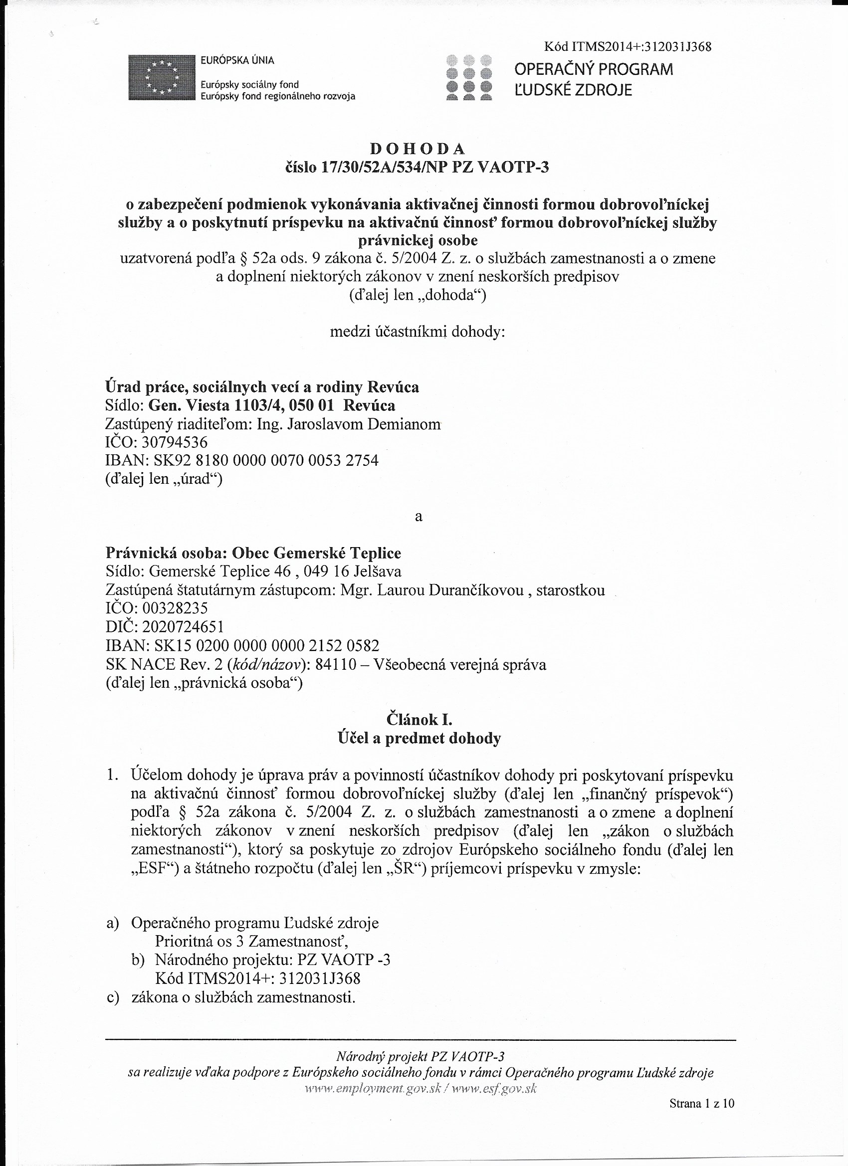 Dohoda č. 17/30/52A/534/NP PZ VAOTP-3