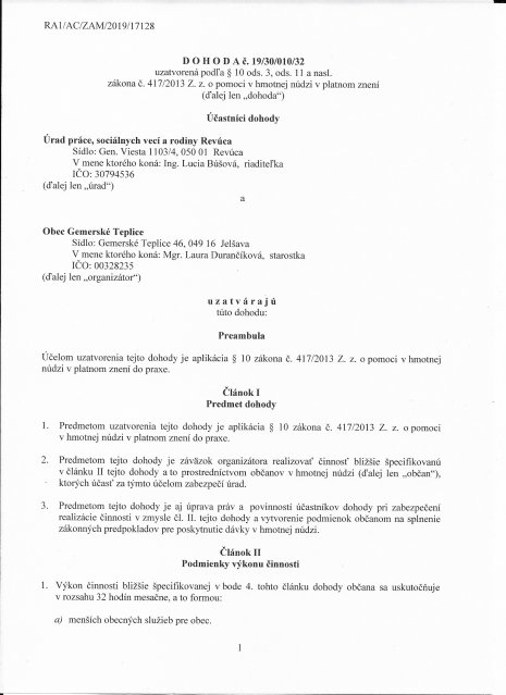 Previous: Dohoda o poskytnutí dotácie na náklady spojené s činnosťou žiakov v záujmových útvaroch Centra voľného času v Revúcej