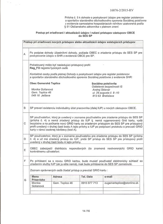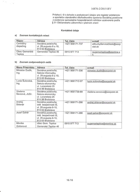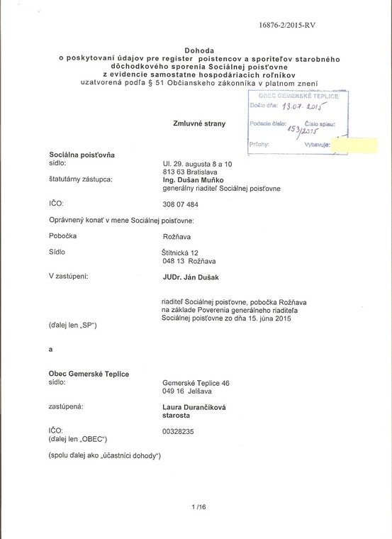 Dohoda o poskytovaní údajov pre register poistencov a sporiteľov starobného dôchodkového sporenia Sociálnej poisťovne Posted on 2. septembra 2015 by gemersketeplice