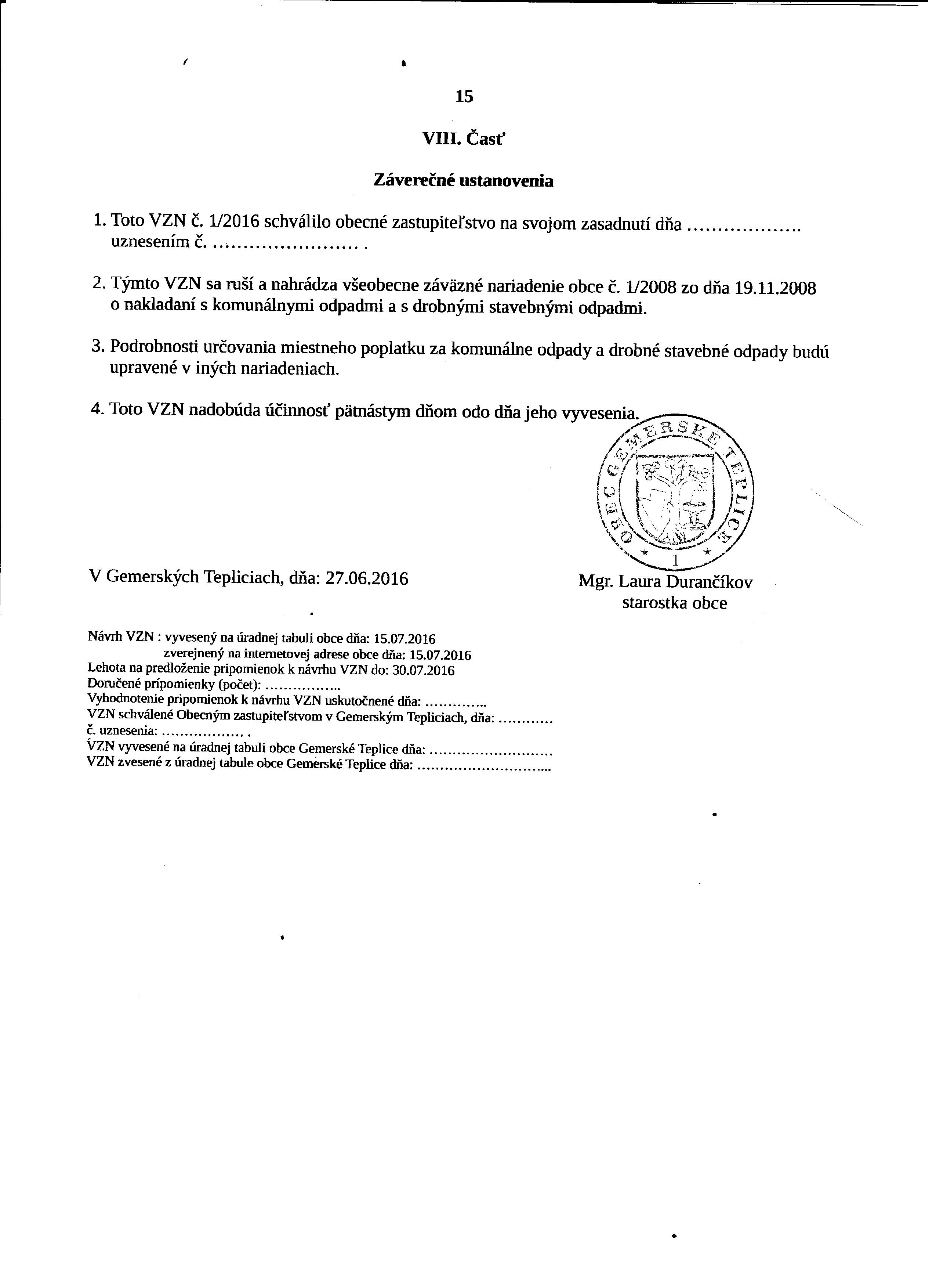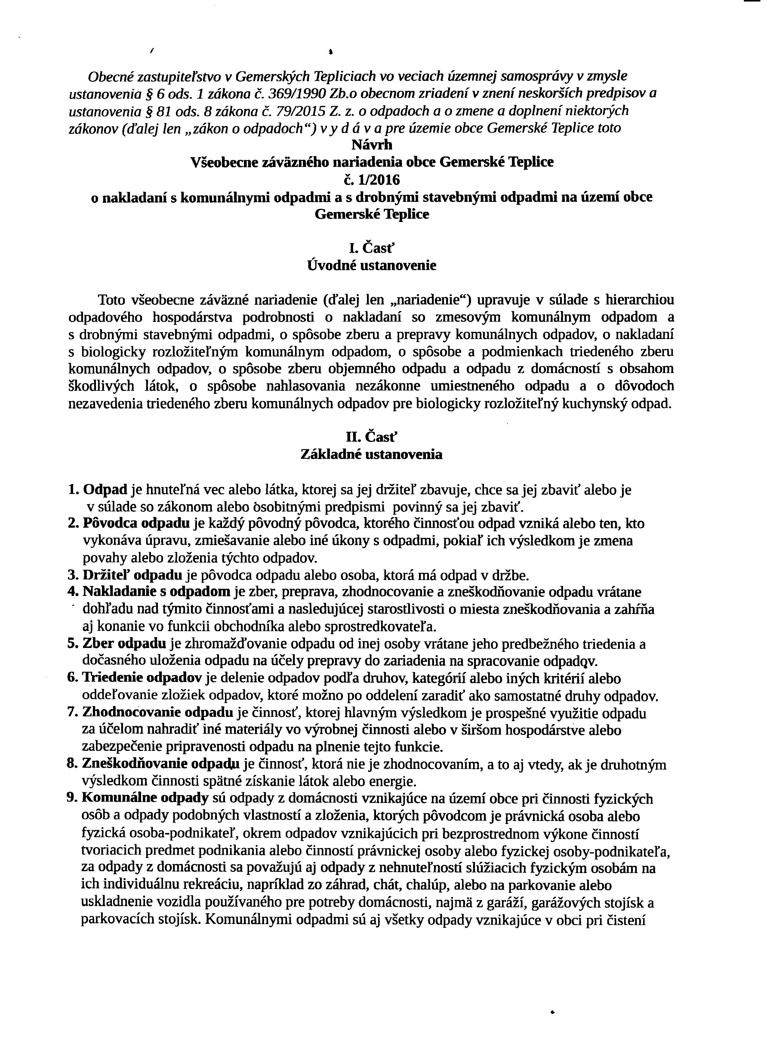 Návrh Všeobecne záväzne nariadenia obce Gemerské Teplice č. 1/2016 o nakladaní s komunálnymi odpadmi a s drobnými stavebnými odpadmi na území obce Gemerské Teplice Posted on 14. júla 2016 by gemersketeplice príloha1 príloha9 príloha2 príloha10 príloha3 príloha11 príloha4 príloha12 príloha5 príloha13 príloha6 príloha14 príloha7 príloha15 príloha8 príloha-kalendár-plán-zberu-TKO