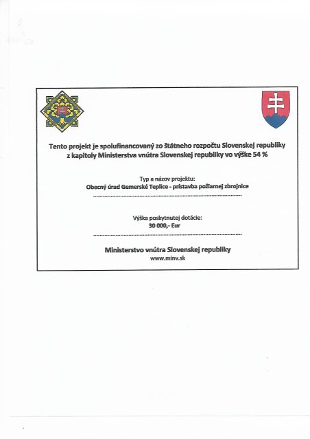 Obec Gemerské Teplice ďakuje za poskytnutú dotáciu Ministerstvu vnútra Slovenskej republiky.