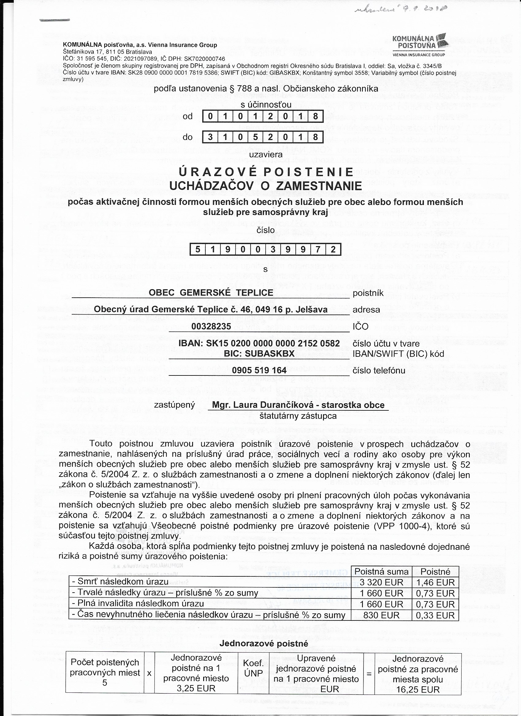 Úrazové poistenie uchádzačov o zamestnanie počas aktivačnej činnosti formou menších obecných služieb pre obec Posted on 11. januára 2018 by gemersketeplice Príloha Príloha