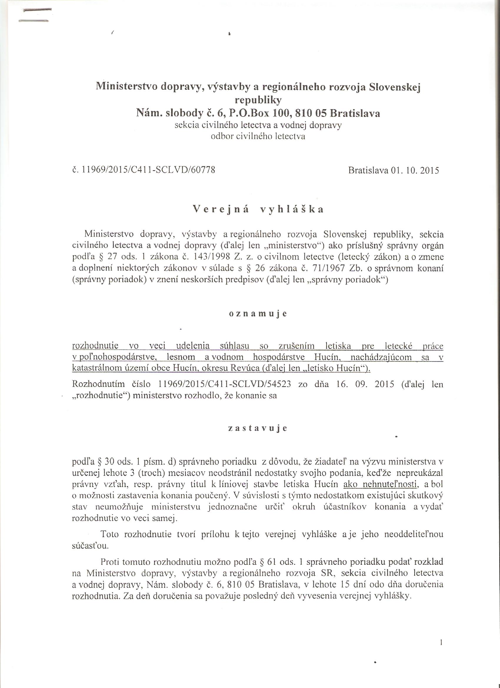 Verejná vyhláška č.11969-2015-C411-SCLVD-60778