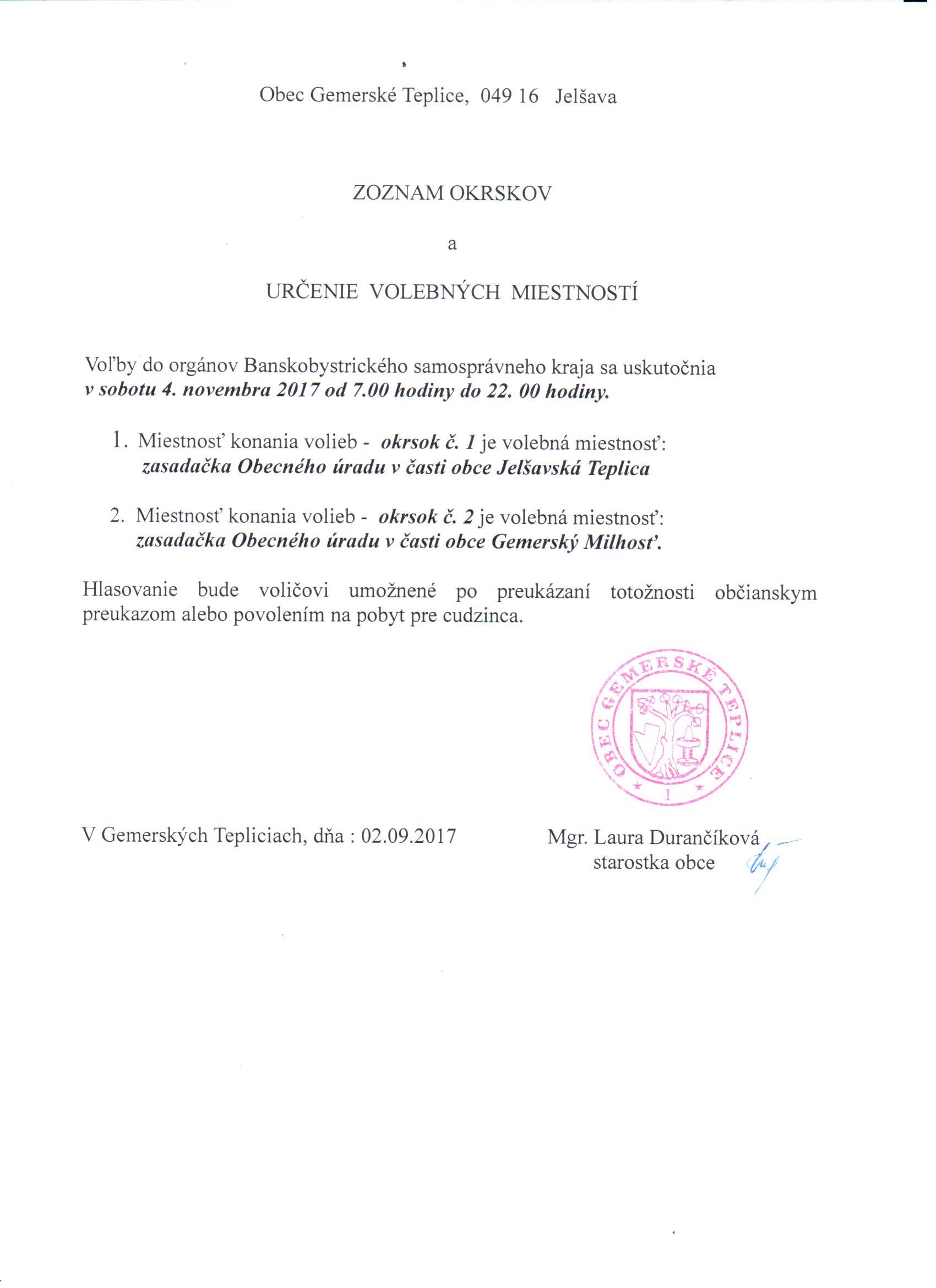 VOĽBY DO ORGÁNOV SAMOSPRÁVNYCH KRAJOV 2017