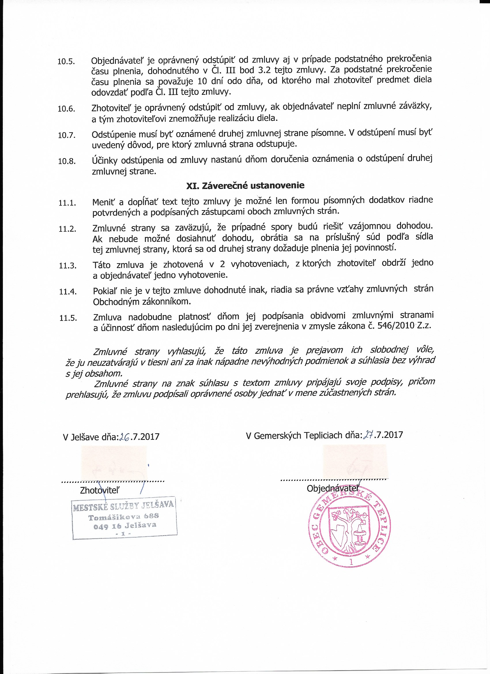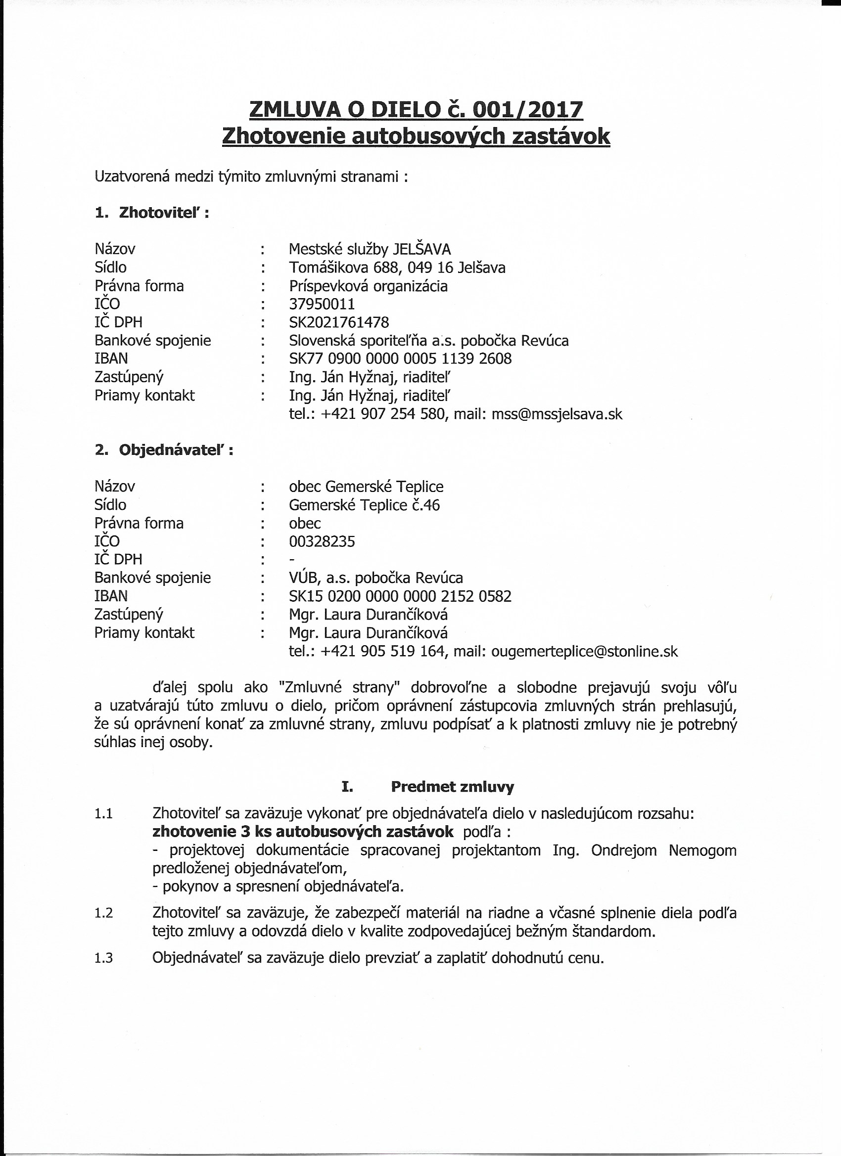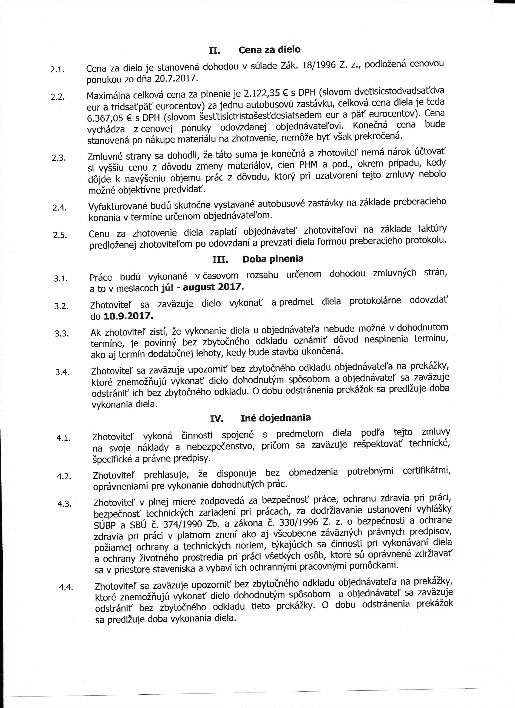 Zmluva o dielo č. 001/2017 Zhotovenie autobusových zastávok