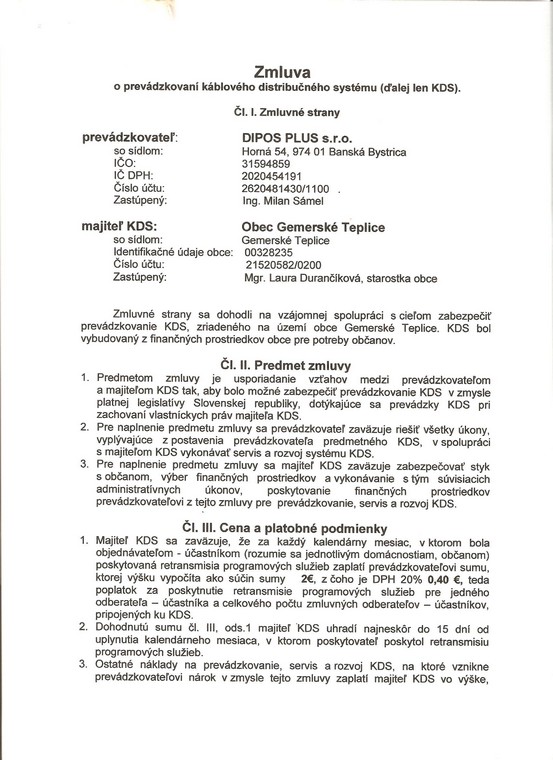 Zmluva o prevádzkovaní káblového distribučného systému Posted on 2. septembra 2015 by gemersketeplice