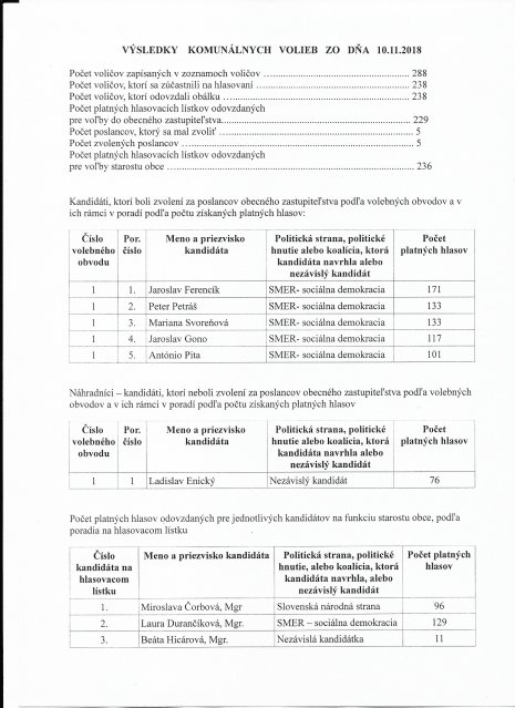 Príloha – Výsledky Komunálnych volieb v obci Gemerské Teplice zo dňa 10.11.2018