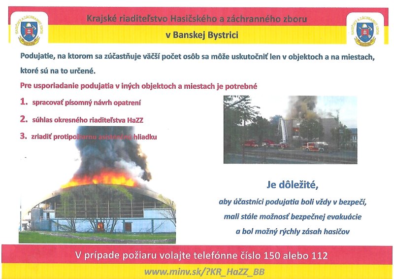 Podujatie, na ktorom sa zúčastňuje väčší počet osôb sa môže uskutočniť len v objektoch a na miestach, ktoré sú na to určené – upozornenie – Krajské riaditeľstvo Hasičského a záchranného zboru v Banskej Bystrici Posted on 22. júla 2022 by gemersketeplice