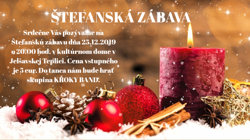 ŠTEFANSKÁ ZÁBAVA V JELŠAVSKEJ TEPLICI DŇA 25.12.2019