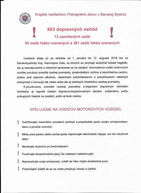 Upozornenie – Krajské riaditeľstvo Policajného zboru v Banskej Bystrici